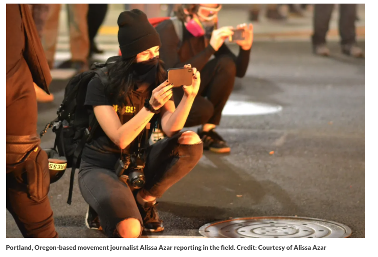 Prism recounts Azar’s ongoing dealings with Oregon authorities, who she says have targeted her specifically for her antifascist journalism. Last year, she was prosecuted for using pepper spray in self-defense against Proud Boys, some of whom later pled guilty to disorderly conduct and harassment. In court, prosecutors attempted to argue that Azar is an activist, not a reporter. And now the trespassing charge is the latest attempt to silence Azar’s journalism: